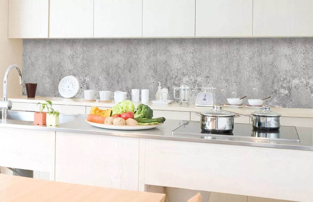 Valokuvatapetti keittiöön laminoinnilla, itseliimautuvalla kalvolla ja flizelineillä - Betoni (versio 2) (350x60 cm)