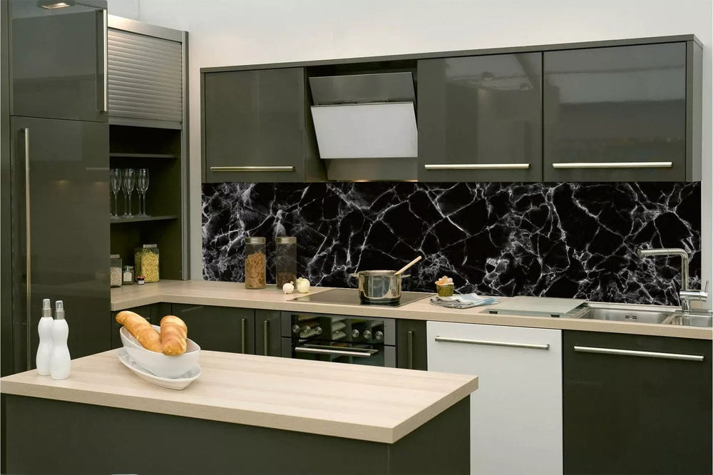 Laminoidut valokuvatapetit keittiöön - Melns marmors (260x60 cm)
