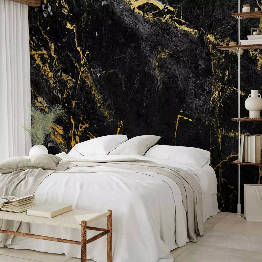 Valokuvatapetti marmorikuvioinen, musta ja kultainen - 134649