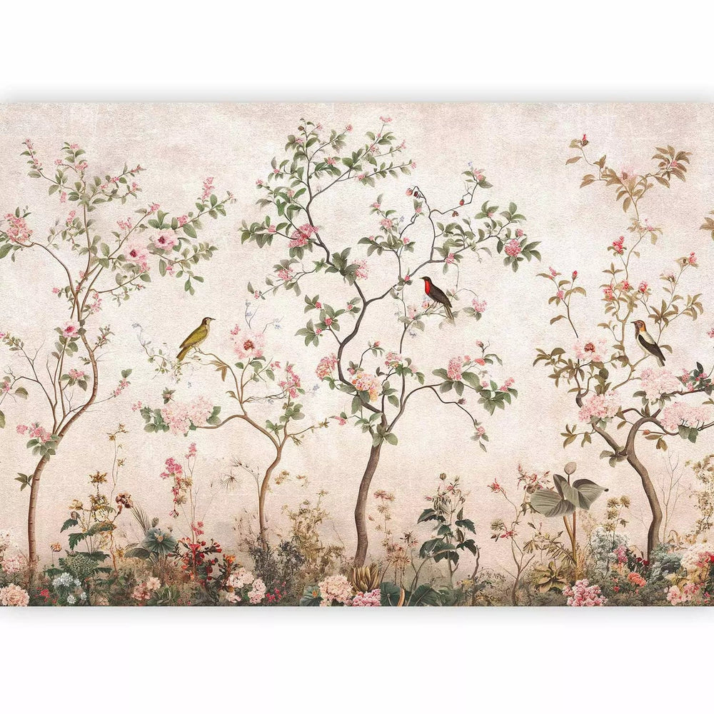 Fototapetes - ziedoši krūmi ar putniem sulīgas veģetācijas vidū G-ART