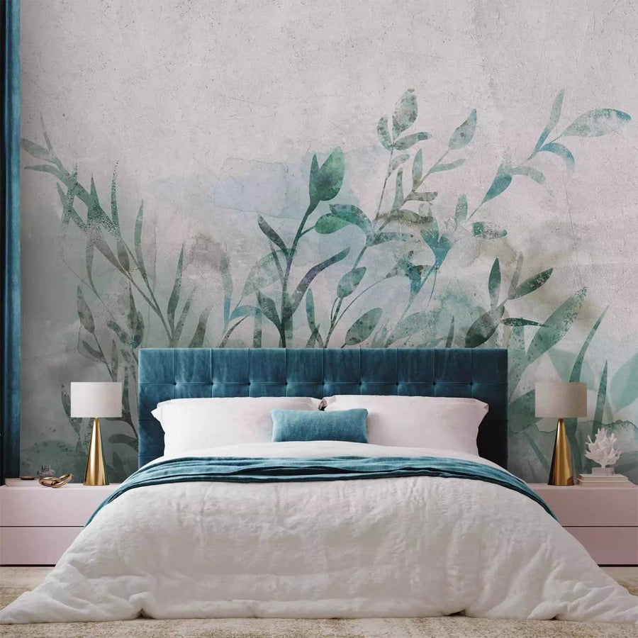 Fototapetes - zaļas lapas uz gaiši pelēka fona - Klusā daba, 135482 G-ART