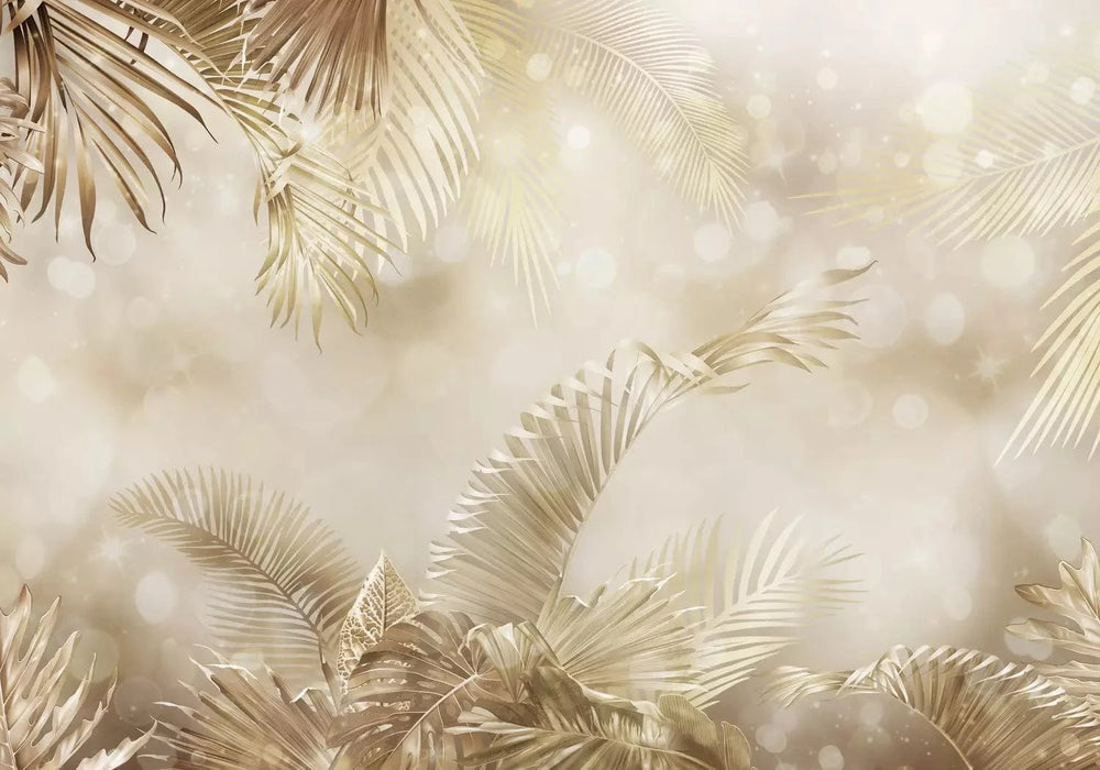 Fototapetes - Mistisks stūrītis, kompozīcija ar zelta eksotiskām lapām G-ART