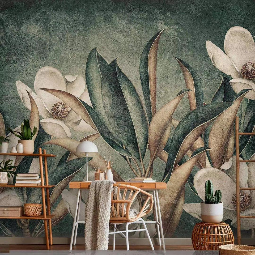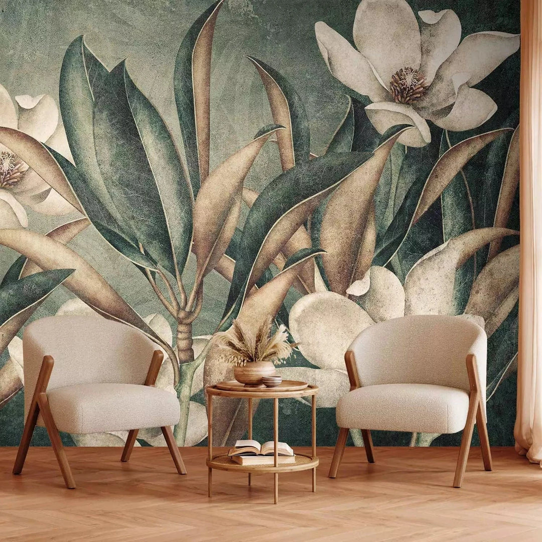 Valokuvatapetti trooppisia kukkia vihreällä taustalla, kolmas versio, 143727