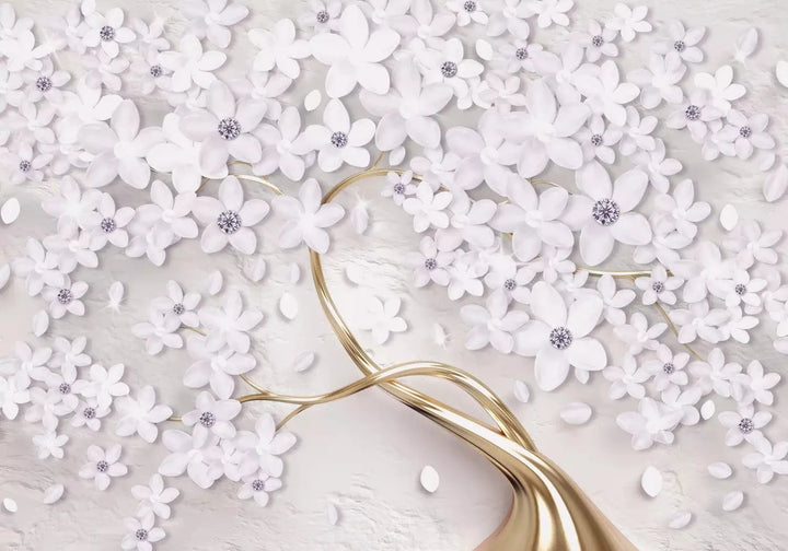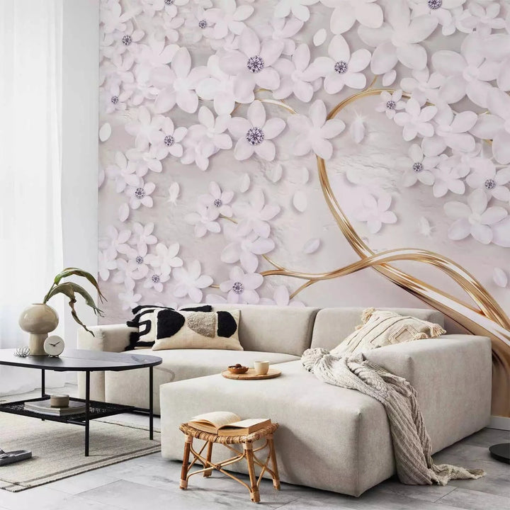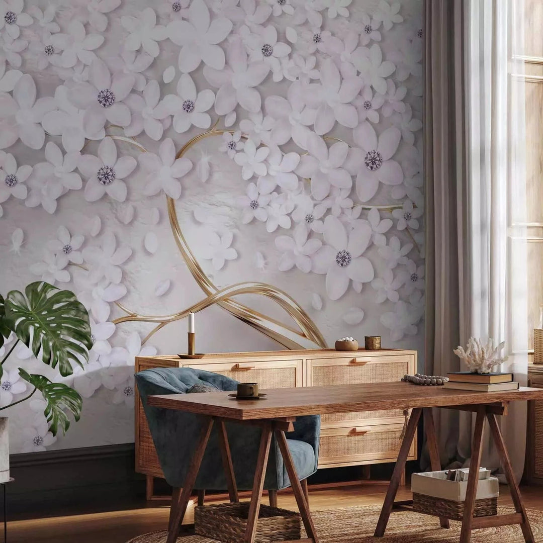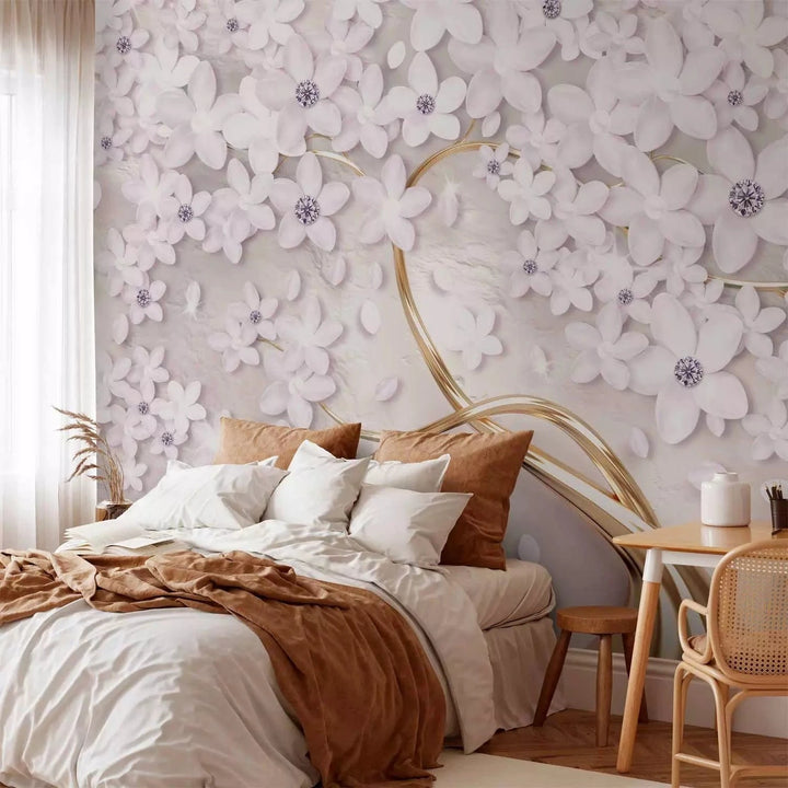 Valokuvatapetti - Muistipuu valkoisilla kukilla vaaleanpunaisella taustalla - 136096