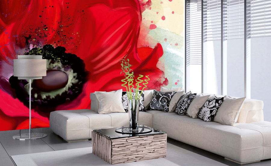 Melnbaltas fototapetes ar sarkanam lapiņam D-ART