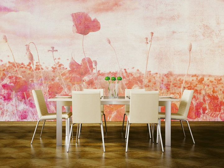 Valokuvatapetti unikoita vintage-tyyliin - D368