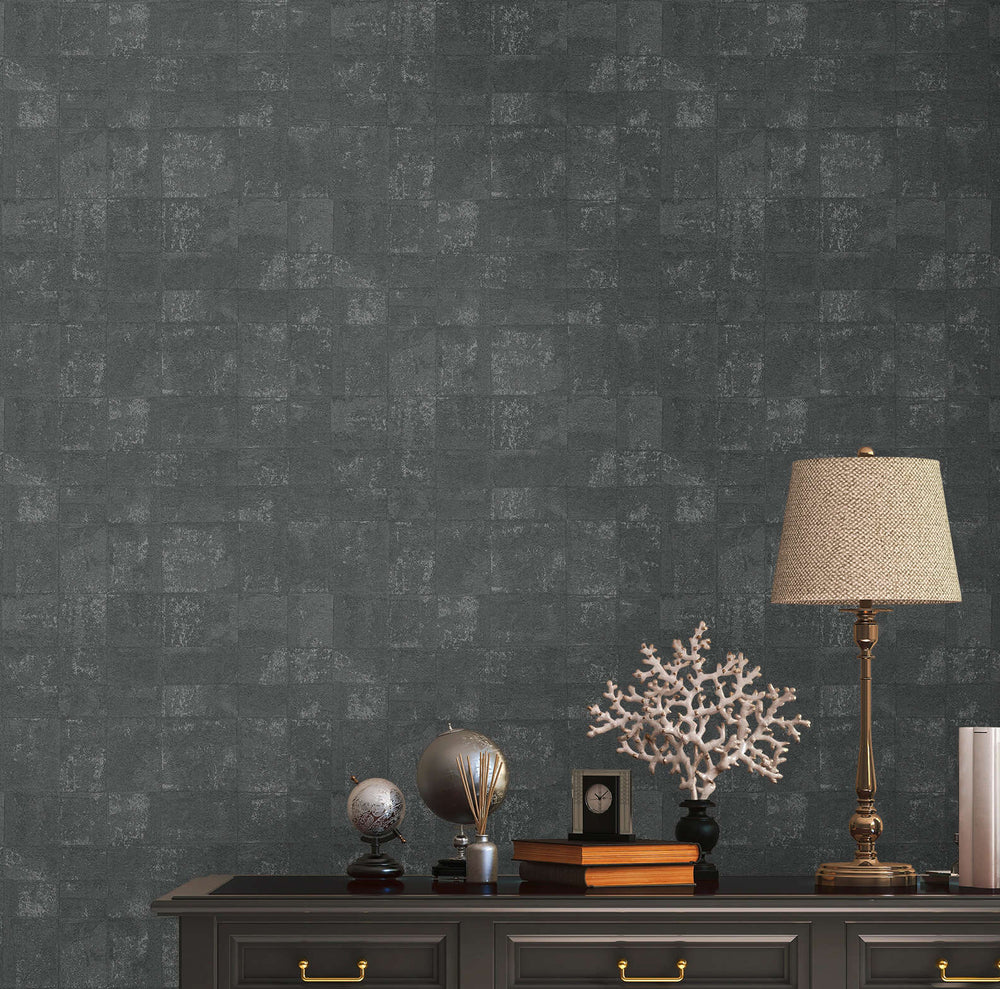 Tapetti, jossa on kaakelimainen ja metallinen vaikutus, musta - 1406652