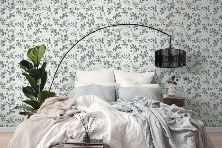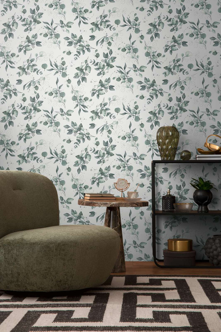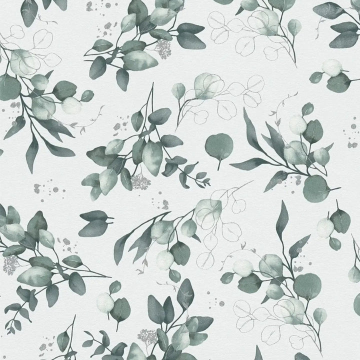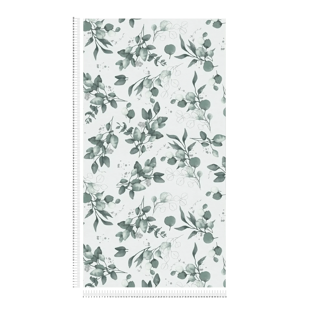 Flizelīna tapetes – Gludas tapetes ar elegantu ziedu motīvu – augstas kvalitātes flizelīna tapetes ar izmēru 0,53x10 m. Krāsa un apdare: Balta/zaļa. Ideāli piemērotas eleganta un modernā interjera izveidei.