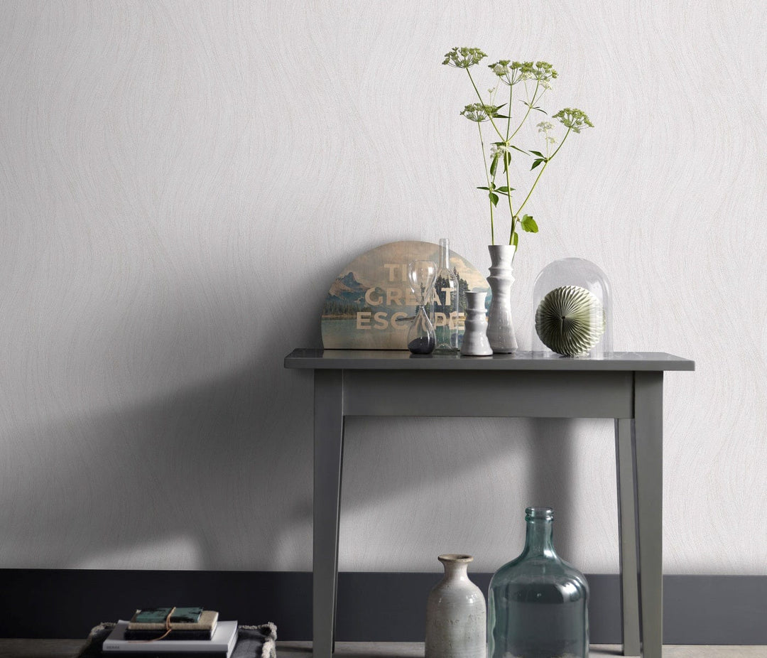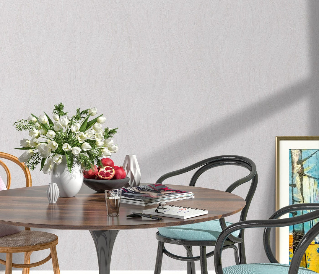 Nämä Tapetit huokuu hienostuneiden, aaltoilevien kuvioiden eleganssia. Sen matta pinta ja kuvioitu viimeistely lisäävät klassista charmia mihin tahansa huoneeseen, ja sitä täydentää harmaan sävyn hienovarainen hohto.