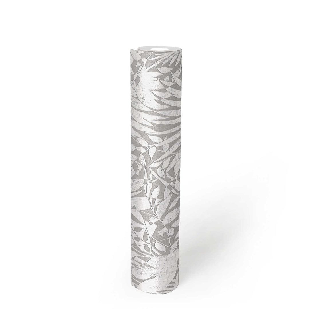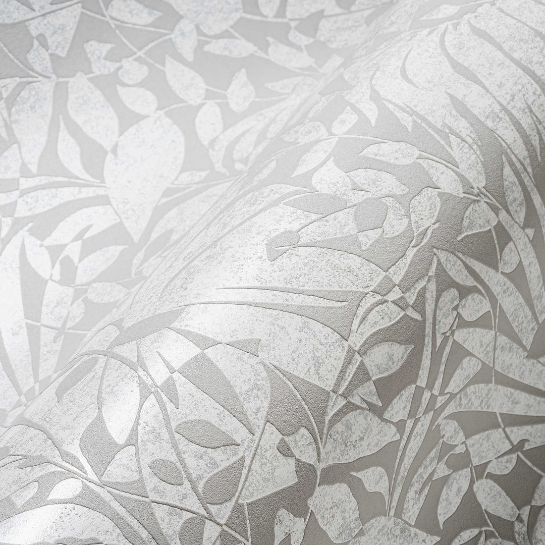 Harmaa tapetti lehdillä ja kuvioidulla pinnalla, 1366330