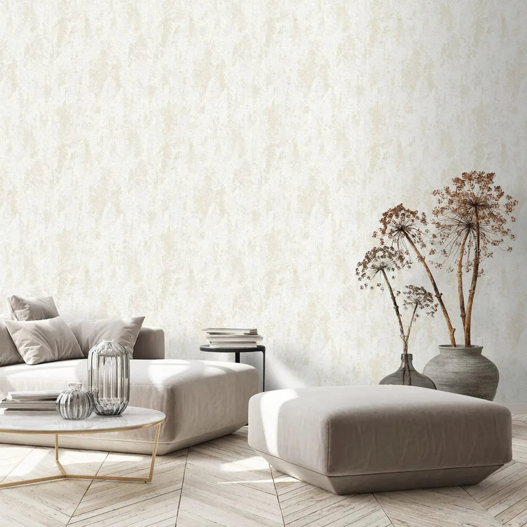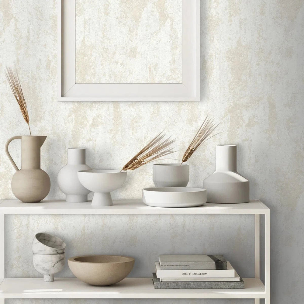 Pehmeät valkoiset ja kermanväriset tapetit, joissa on hienovarainen kiilto, luovat puhtaan ja valoisan ympäristön.