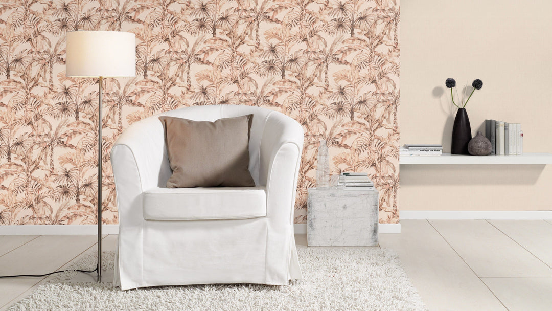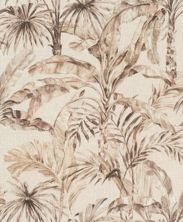 Sinun ei tarvitse matkustaa kauas nauttiaksesi trooppisesta lomasta. Loppujen lopuksi pienimmissäkin hytteissä on tilaa Karibian tunnelmalle. Luo kankaan kermanvalkoisen taustan tyylikkään tekstuurin avulla eksoottisia kasveja, kuten banaaninlehtiä ja palmuja ruskean eri sävyissä, mille tahansa seinälle ilman, että sinun tarvitsee käyttää vihreitä sormiasi!