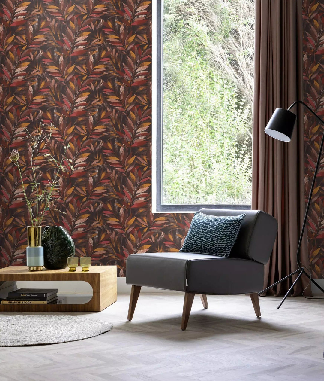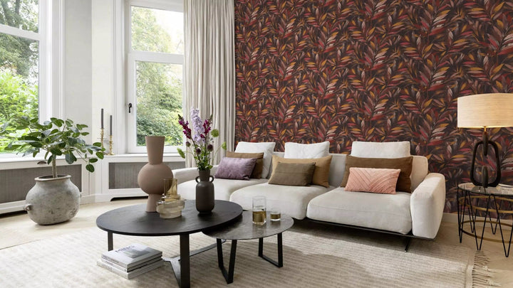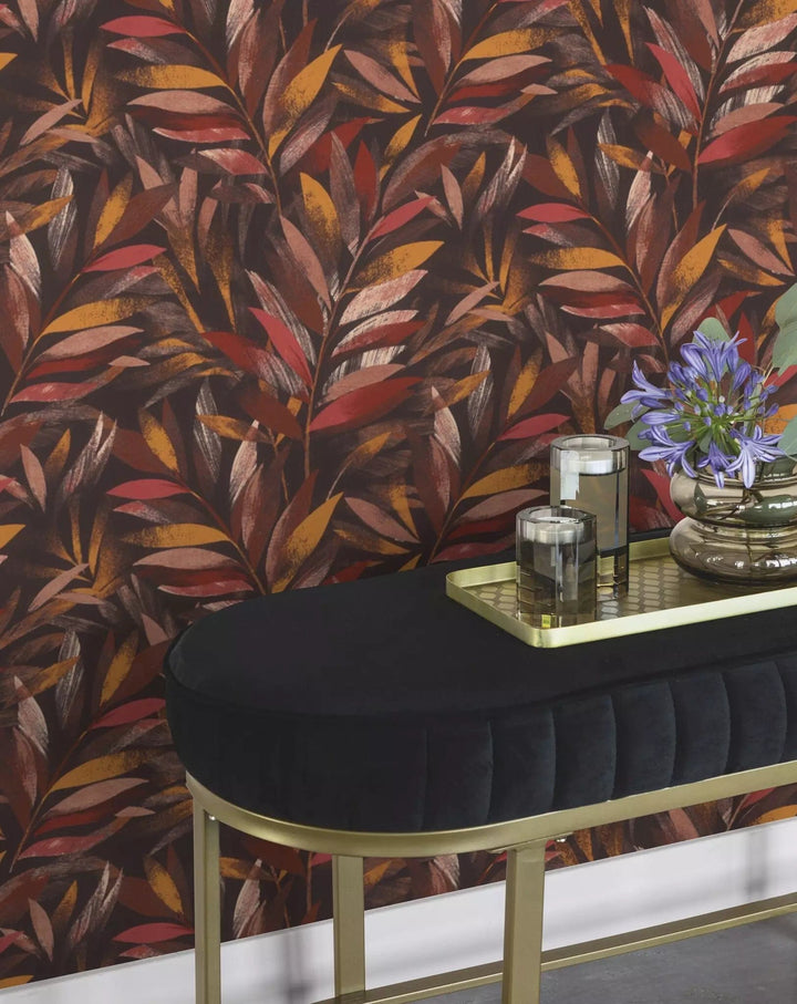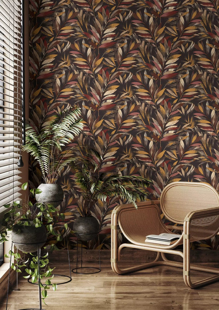 Tapetit RASCH - lehdet hienoissa oksissa ruskeankeltaisina, 3236461