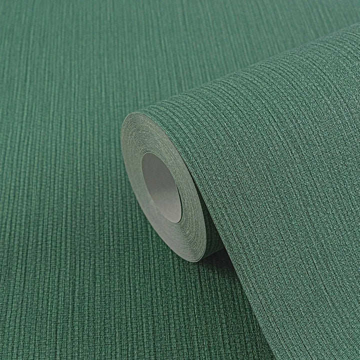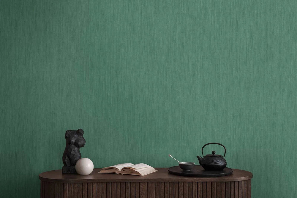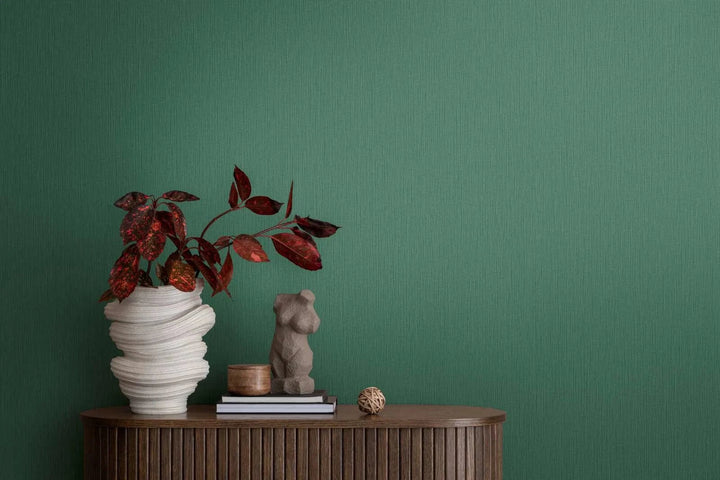 Tummanvihreä fleecetapetti, jossa on kangasvaikutelma, luo ylellisen ja harmonisen tunnelman.
