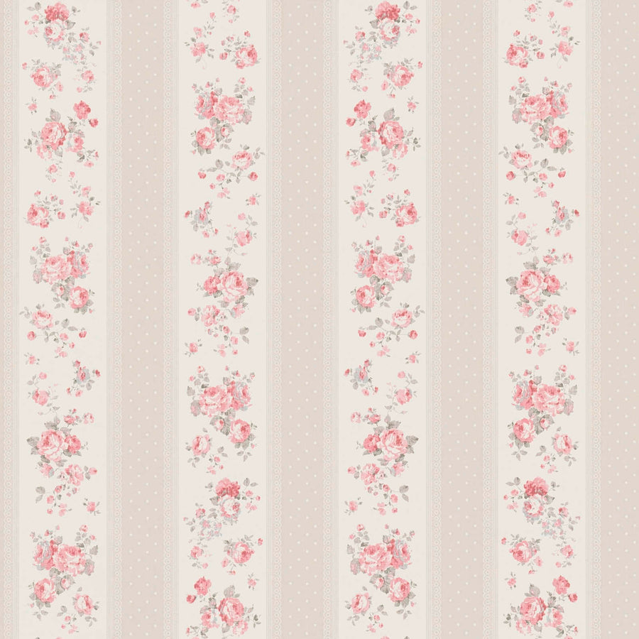 Shabby Chic kukka tapetti: vaaleanharmaa ja vaaleanpunainen- 1373021