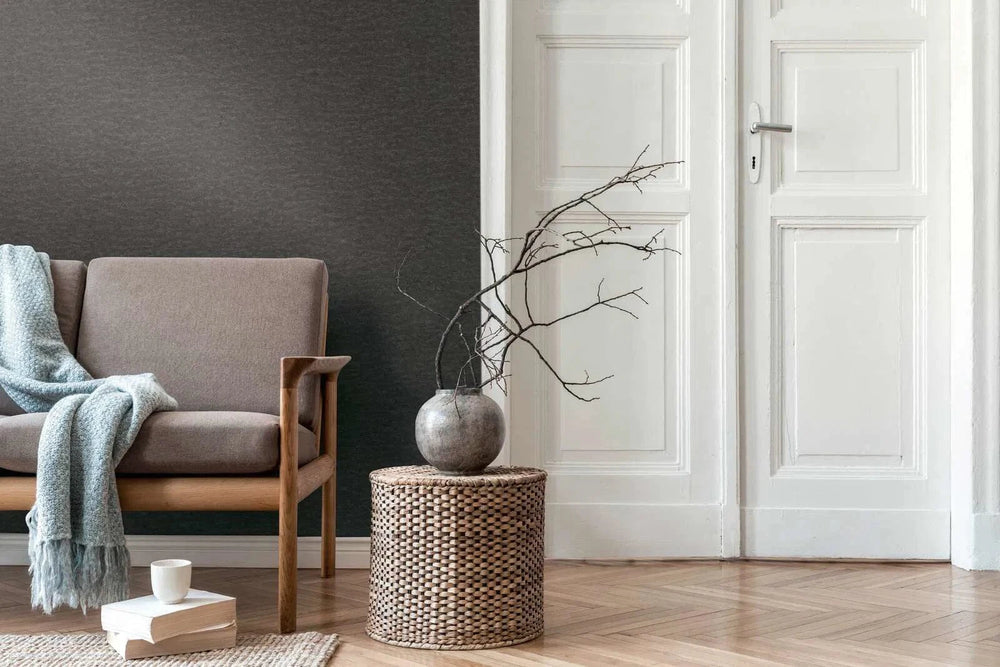 Pelēkas matētas tapetes ar auduma faktūru mūsdienīgam sienu risinājumam   Tapetenshop.lv