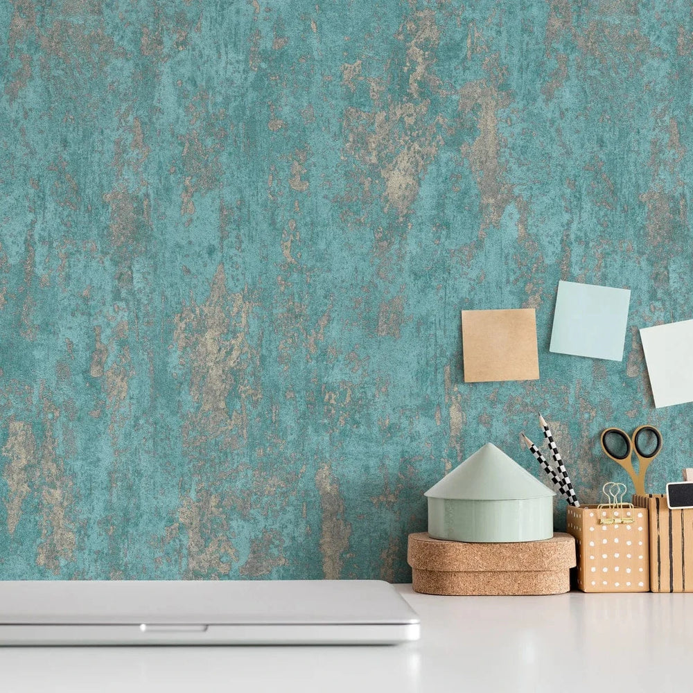 Tirkīza un zelta tapetes ar apmetuma spīdumu greznai sienu apdarei   Tapetenshop.lv