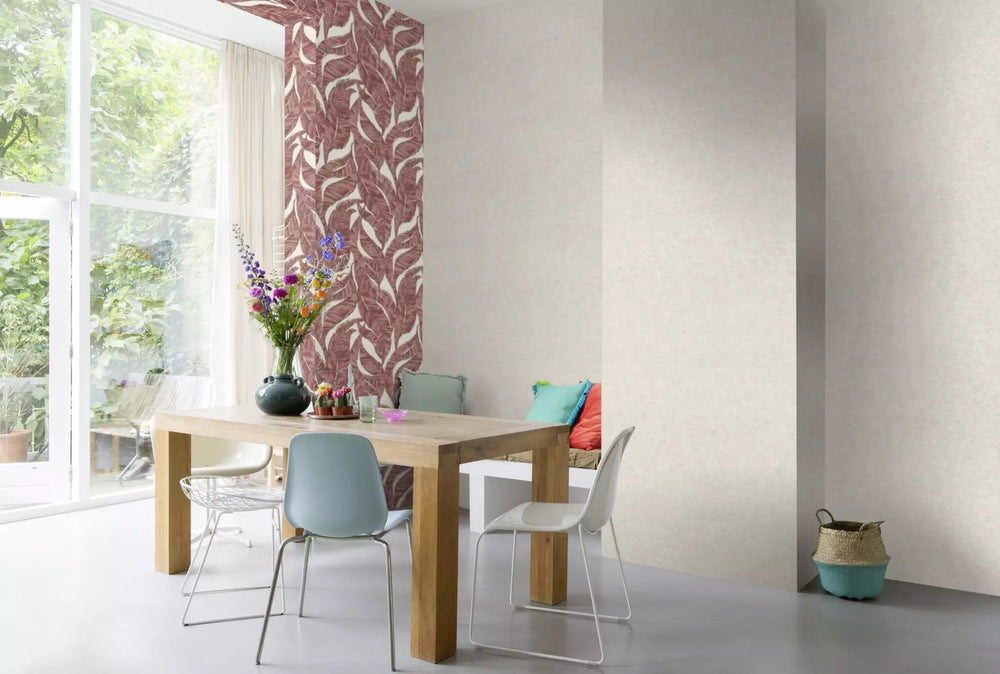 Tropu neaustas tapetes ar lielām palmu lapām - sarkanīgi brūnas - 1375765 AS Creation