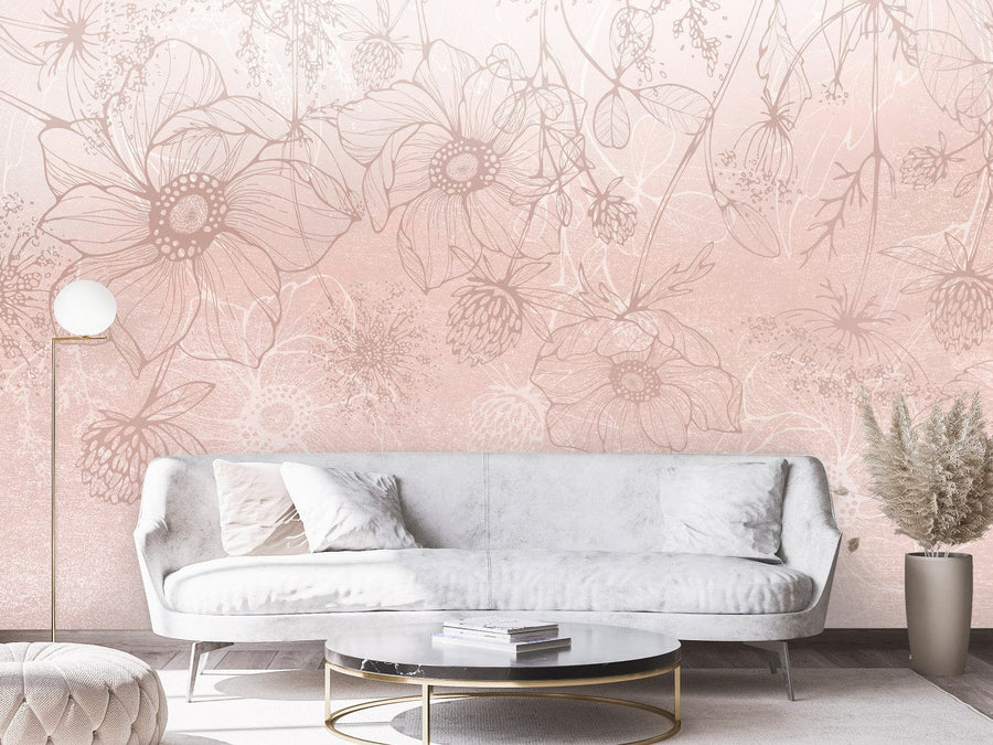Fototapetes guļamistabai ar ziediem - Ziedošs interjers, rozā, 143068 G-ART