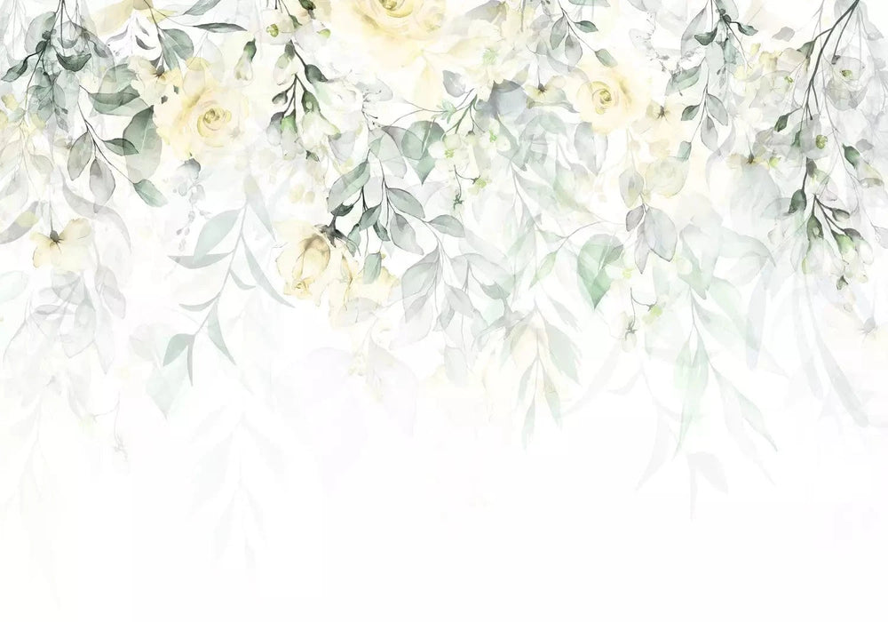 Fototapetes akvareļu stilā - dzelteni ziedi ar zaļam lapām, 130403 G-ART