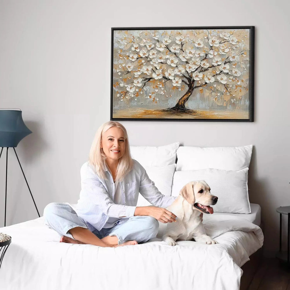 Glezna - Ziedošs koks uz pelēka fona, 151441 - dažādi izmēri G-ART