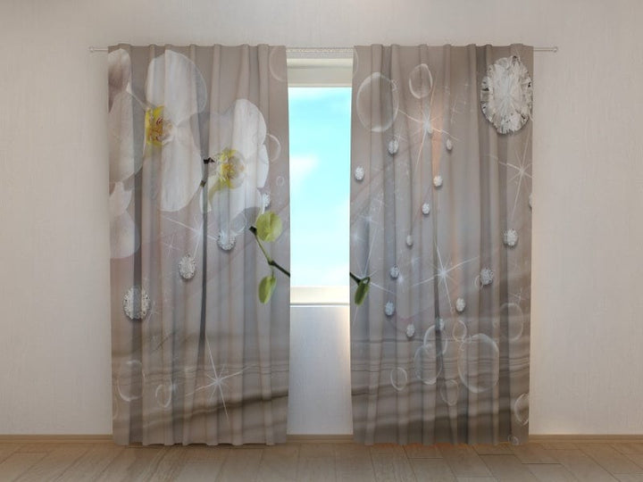 Verhot kukkakuvioilla - Orkideat beige-silkillä