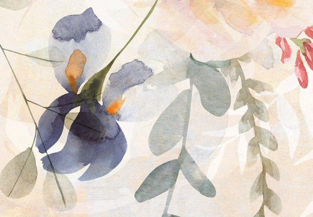 Pyöreä сanvas-taulut (Deluxe) - Kukkia ja lehtiä vaalean beigellä taustalla, 148676
