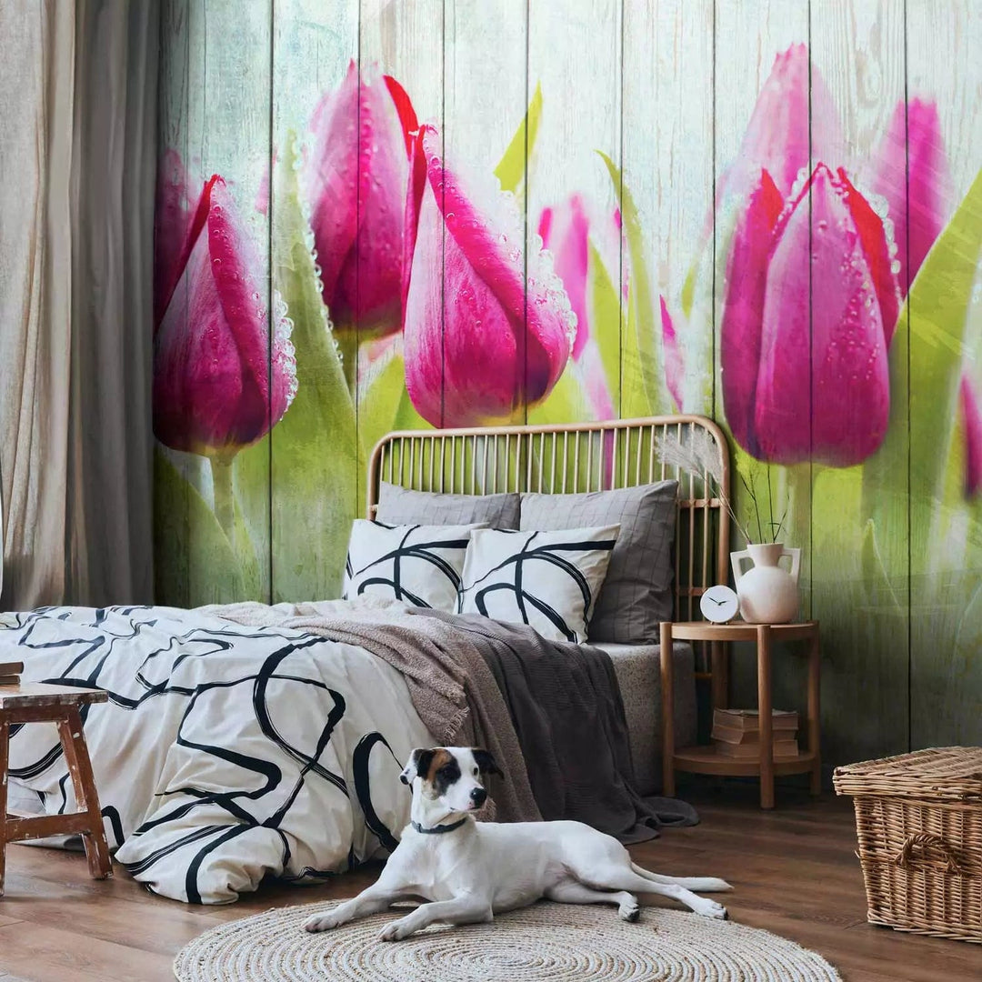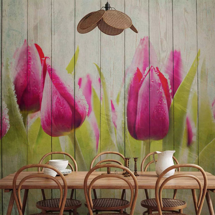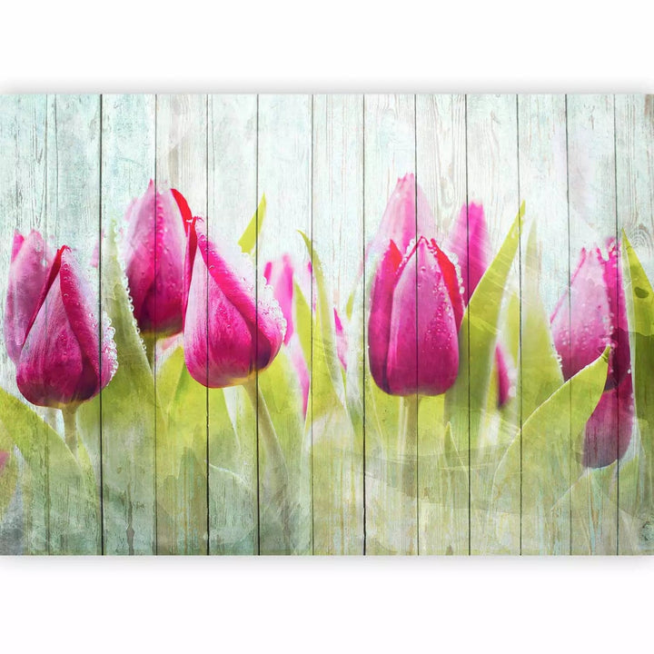 Valokuvatapetti 60343 Tulppaanit valkoisella puulla