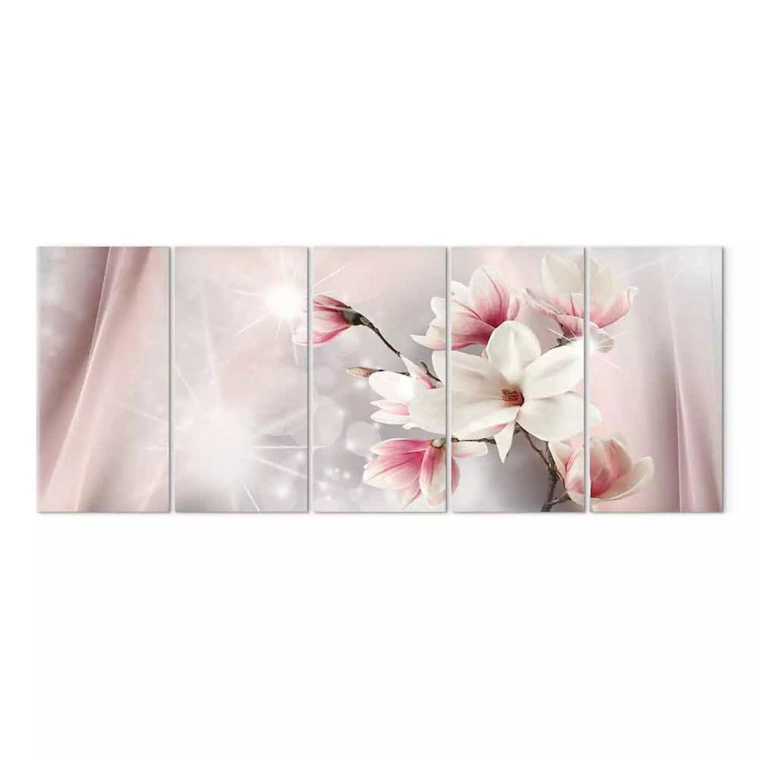 Canvas-taulut vaaleanpunaisen ja harmaan sävyisiä kukkia - Dazzling Magnolias, (x 5), 107896