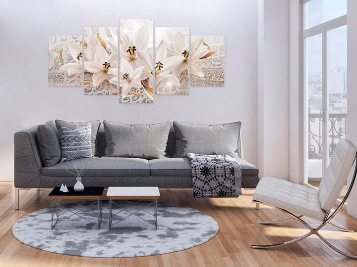 Canvas-taulut tyylikkäällä taustalla liljat - Treasure of Tenderness, 92740, (x5)