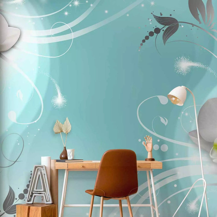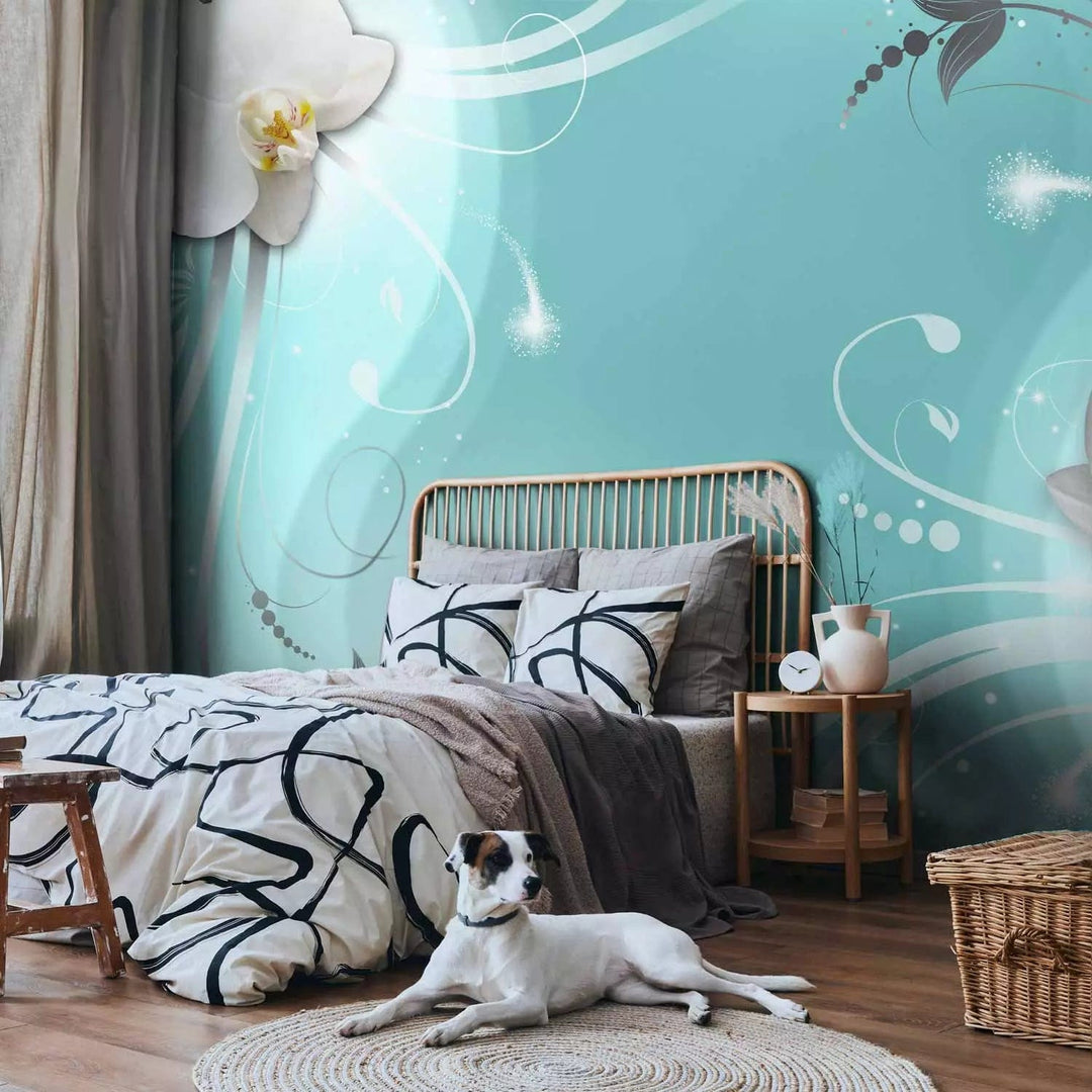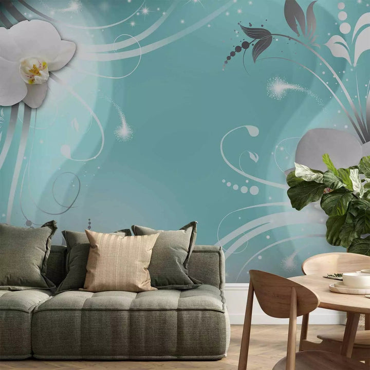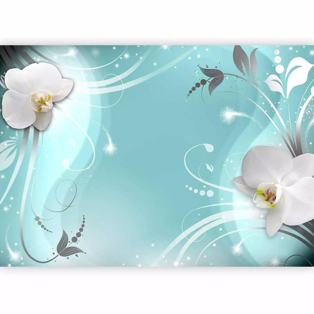 Valokuvatapetti - Valkoinen orkidea turkoosilla taustalla, 97293