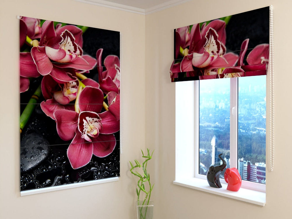 Žalūzijas ar orhidejām  - Fantāzija - kvalitatīvā apdruka uz auduma Tapetenshop.lv