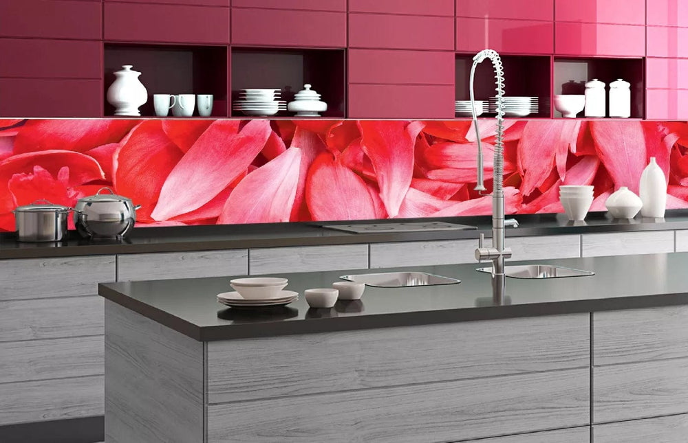 Laminoidut valokuvatapetit keittiöön - Sarkanās ziedlapiņas (350x60 cm)