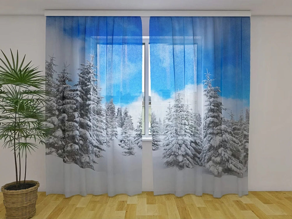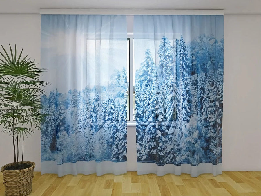 Ziemassvētku aizkari ar reālistisko ziemas meža ainavu - Ziemas mežs Tapetenshop.lv