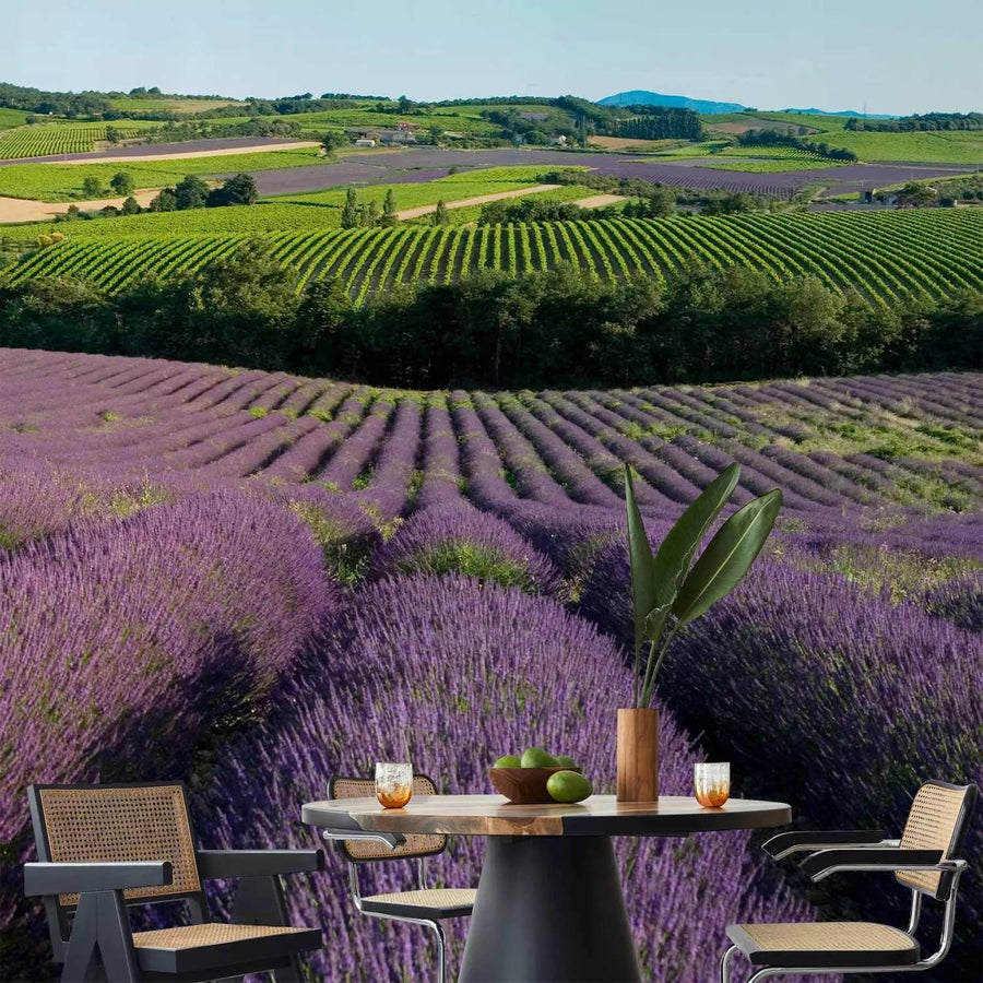 Fototapetes interjerā ar skaistiem lavandas laukiem - zaļa, violeta G-ART
