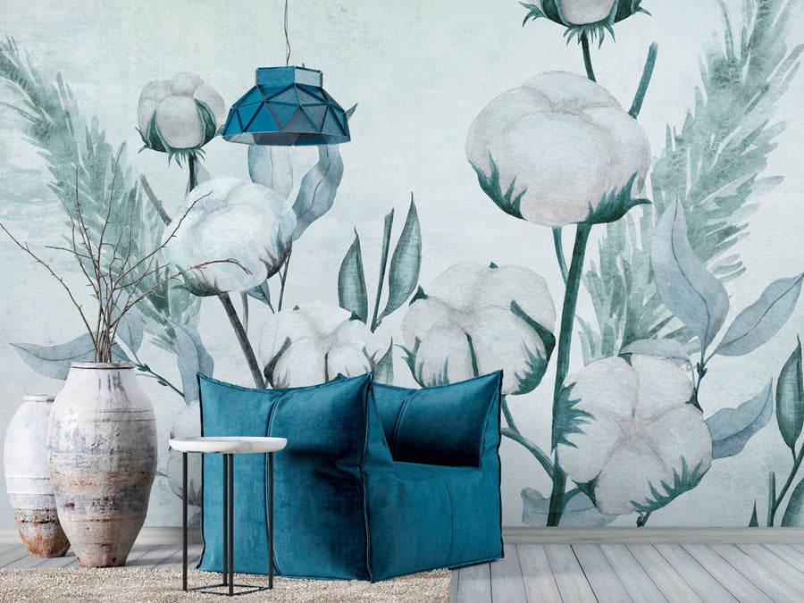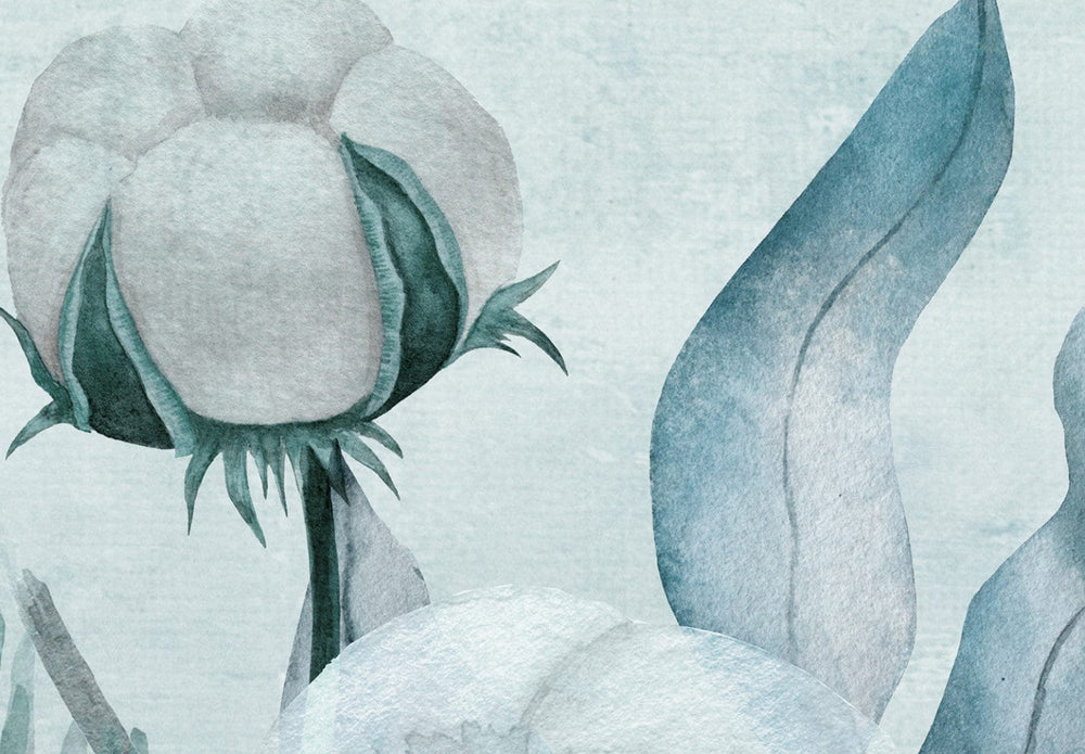 Fototapetes guļamistabai - Kokvilnas ziedi zilos toņos, 143844 G-ART