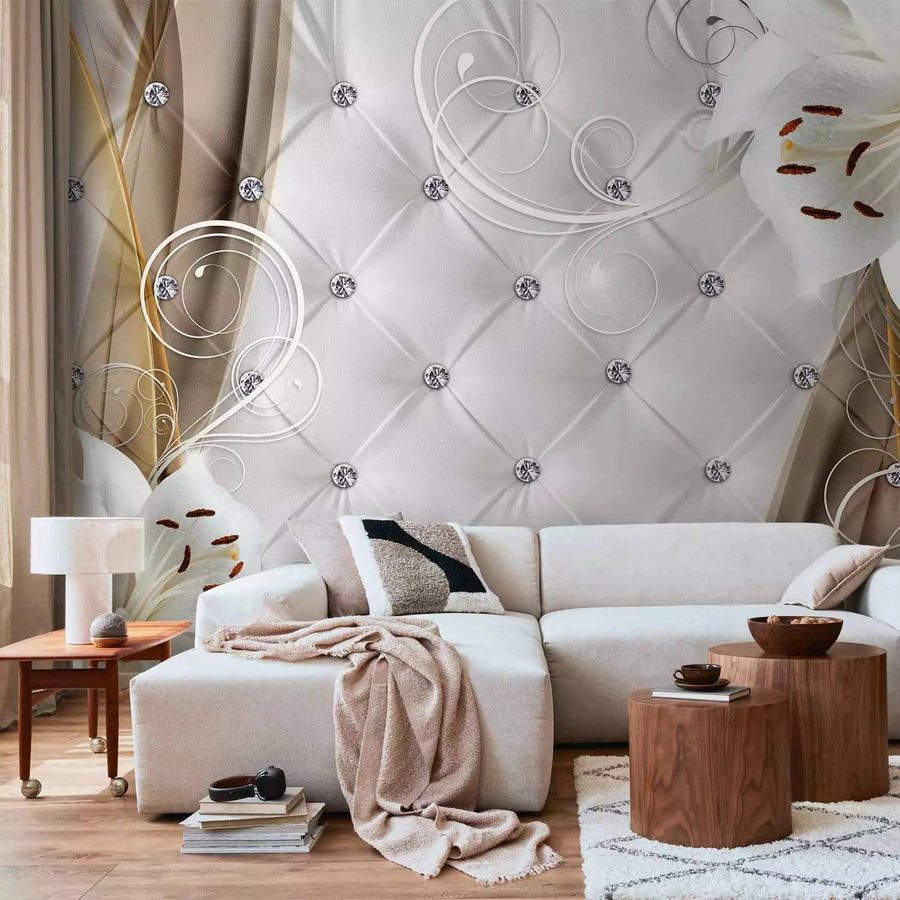 Fototapetes ar lilijām pelēkos toņos un skaistu fonu baltā krāsā  G-ART