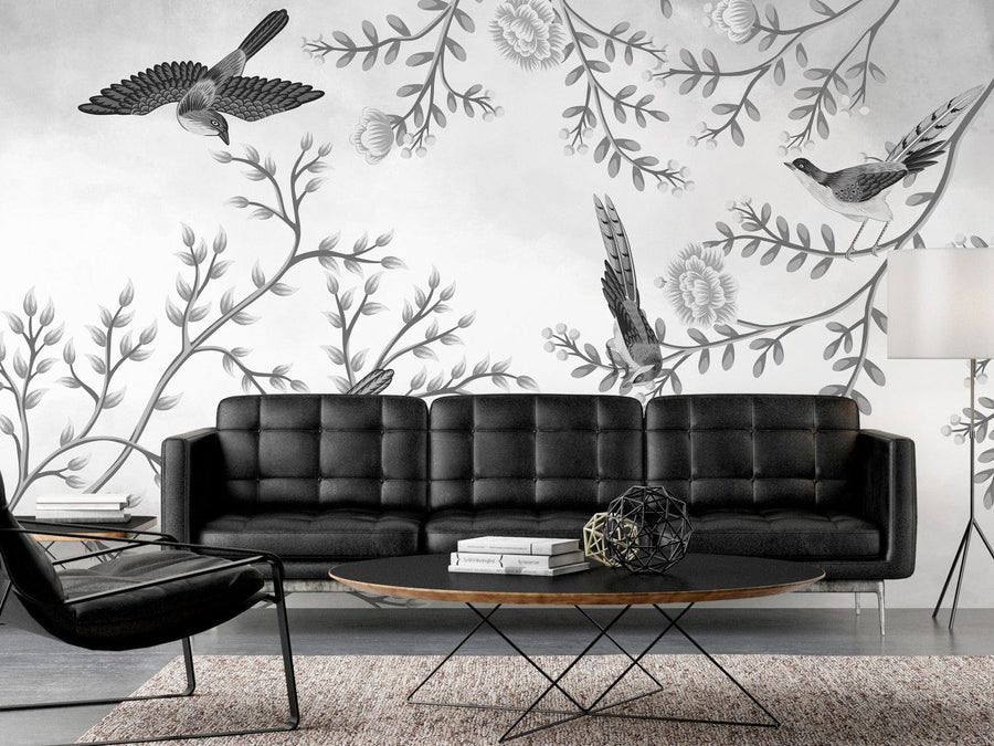Fototapetes ar putniem pelēkā krāsā - Putnu dārzs, 138838 G-ART