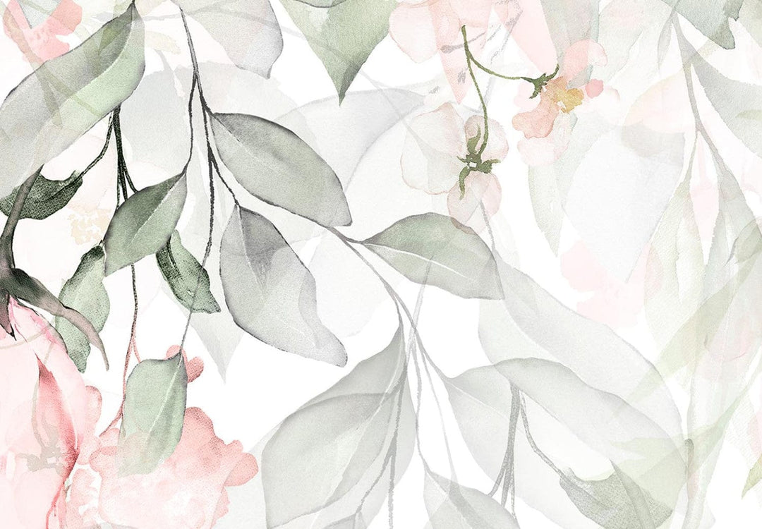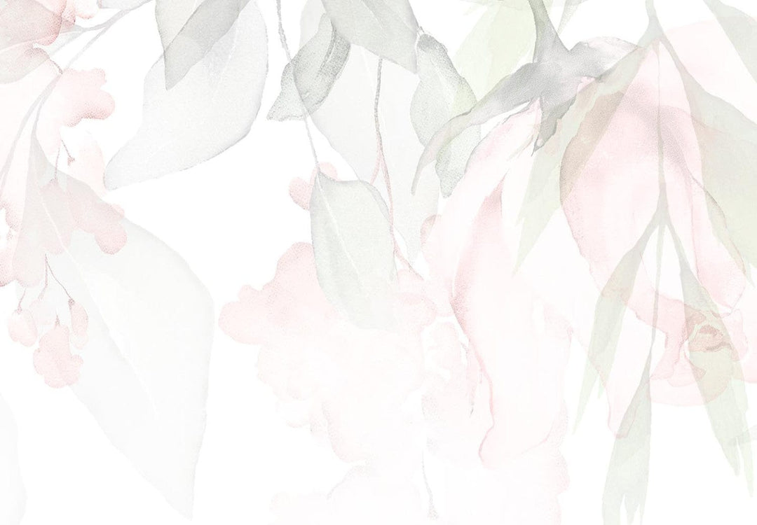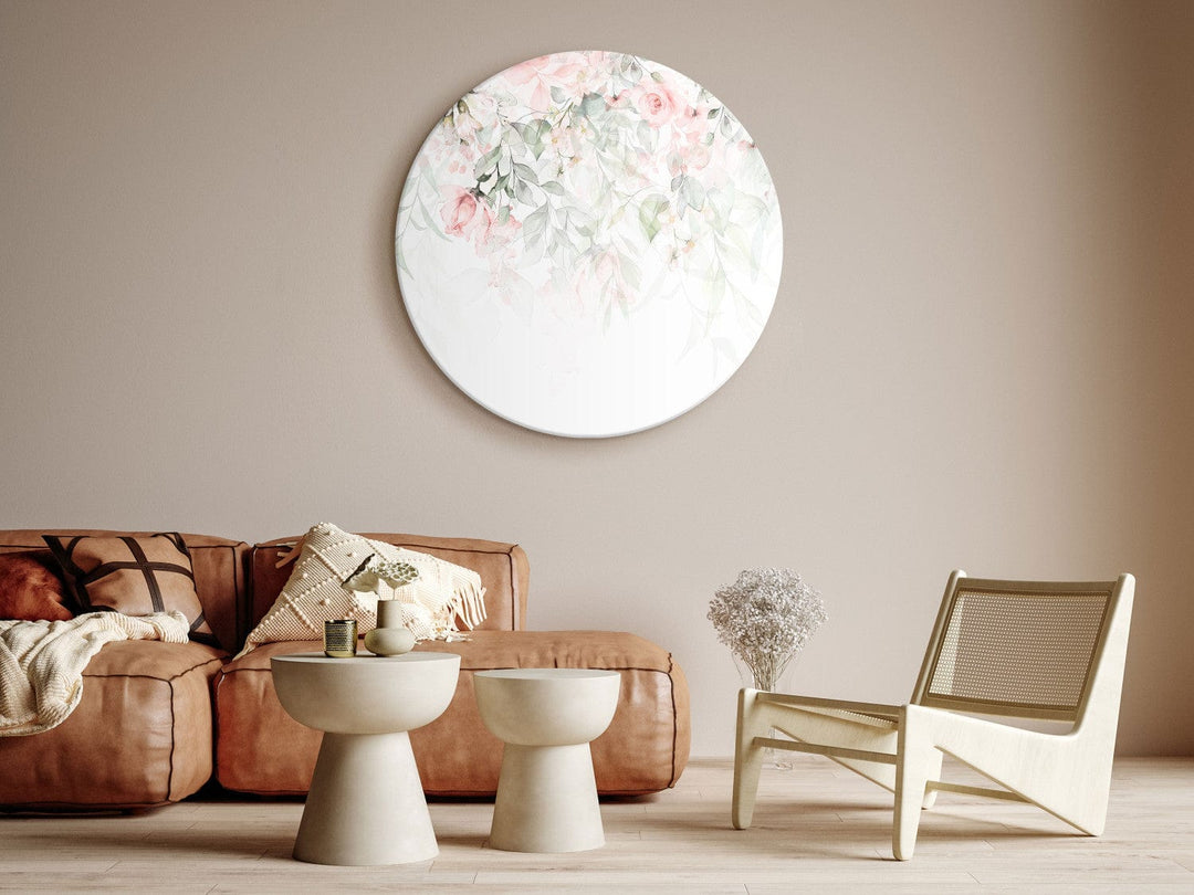 Pyöreä сanvas-taulut (Deluxe) - Vaaleanpunaiset ruusut ja vihreät lehdet valkoisella pohjalla, 148686