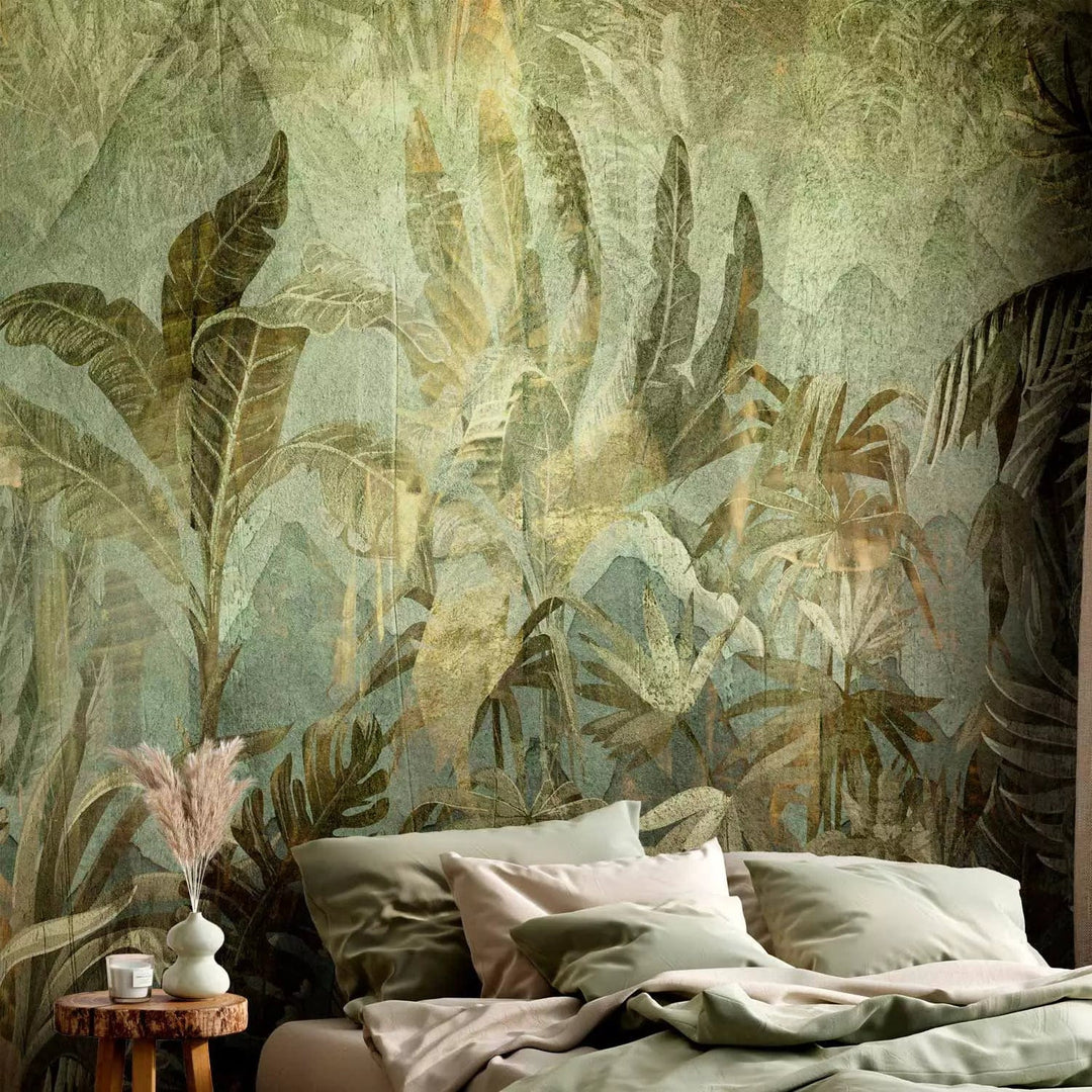 Valokuvatapetti - Eksoottinen kasvillisuus lämpimän vihreissä väreissä, 143879