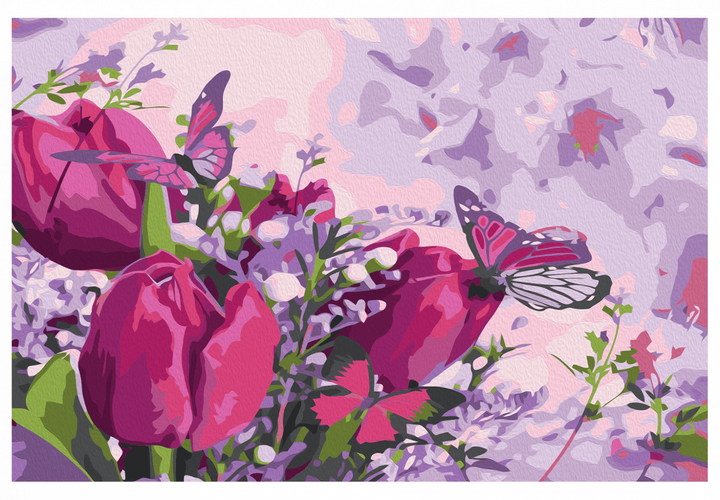 Maalaa numeroiden mukaan - Niitty ja tulppaanit 60x40 cm