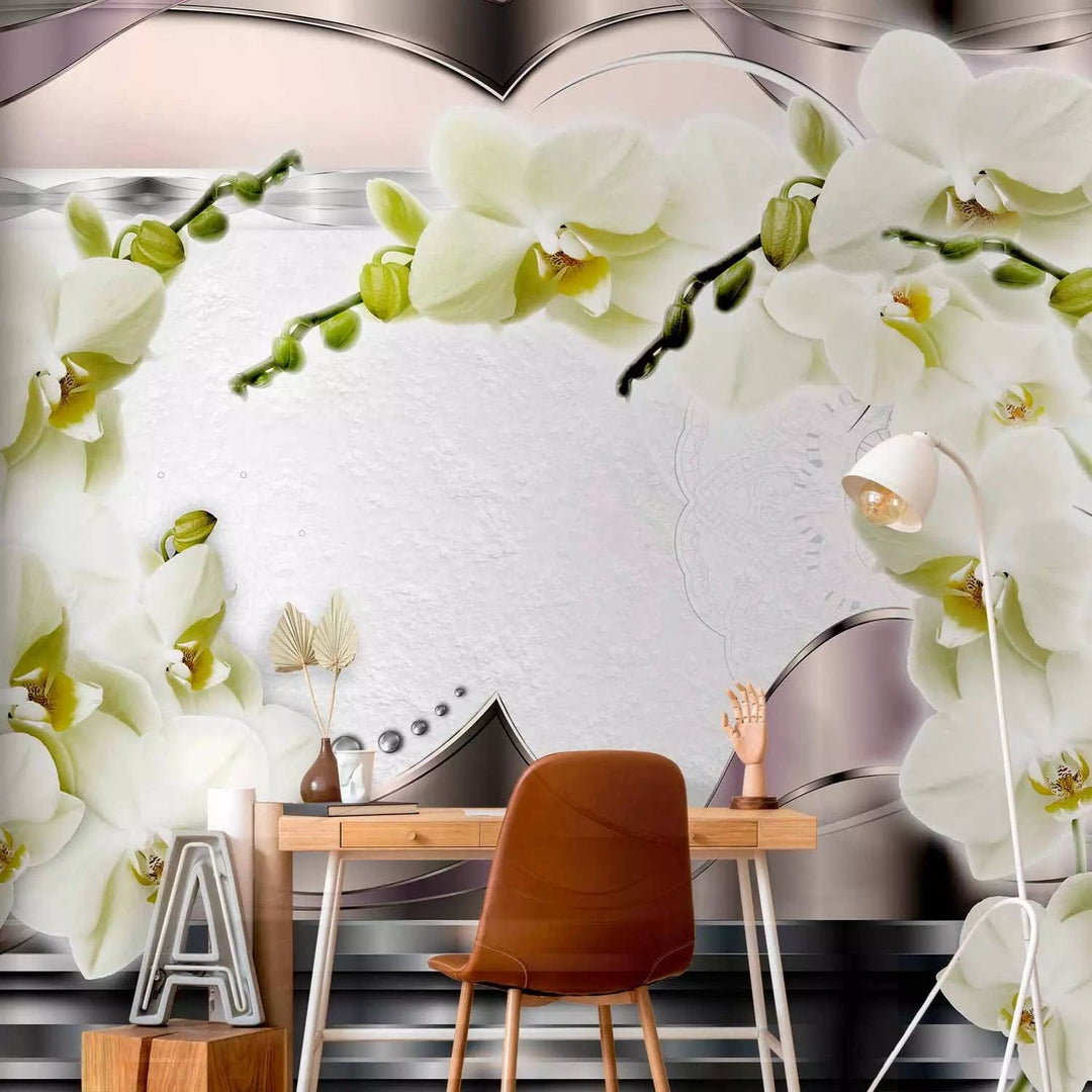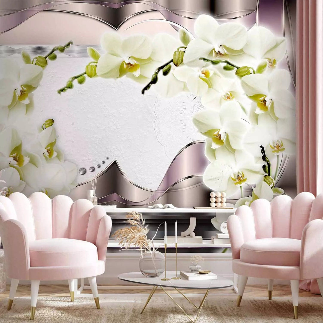 Valokuvatapetti - Pehmeitä keltaisia orkideoita abstraktilla taustalla, 96674