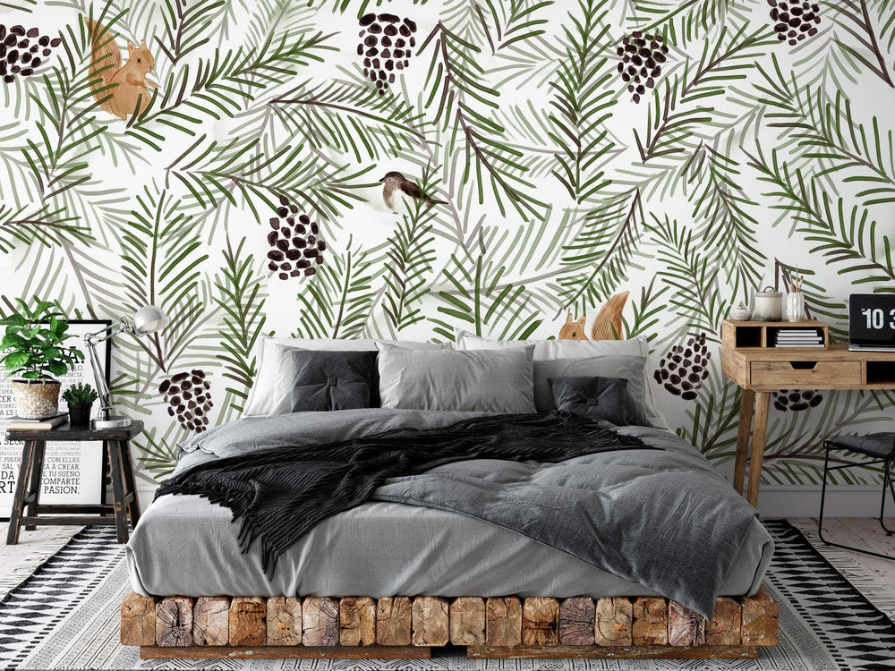 Fototapetes ar vāverēm un čiekuriem - Čiekuri (gaišos toņos) G-ART