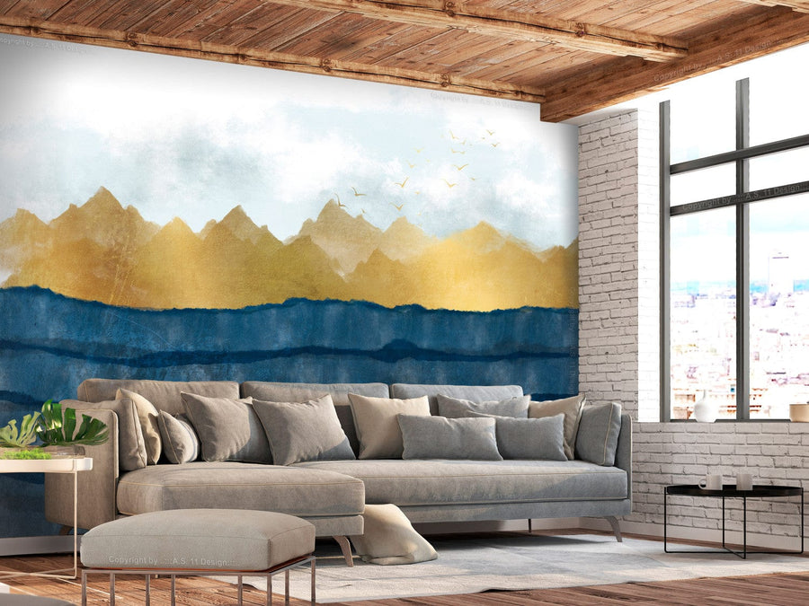 Valokuvatapetti vuorilla - Maisema sinisen ja kullan sävyissä, 138527