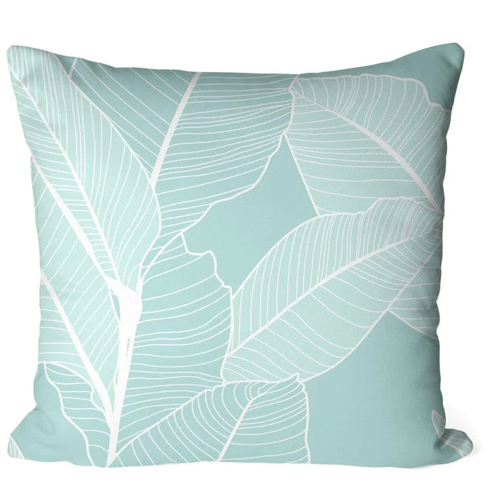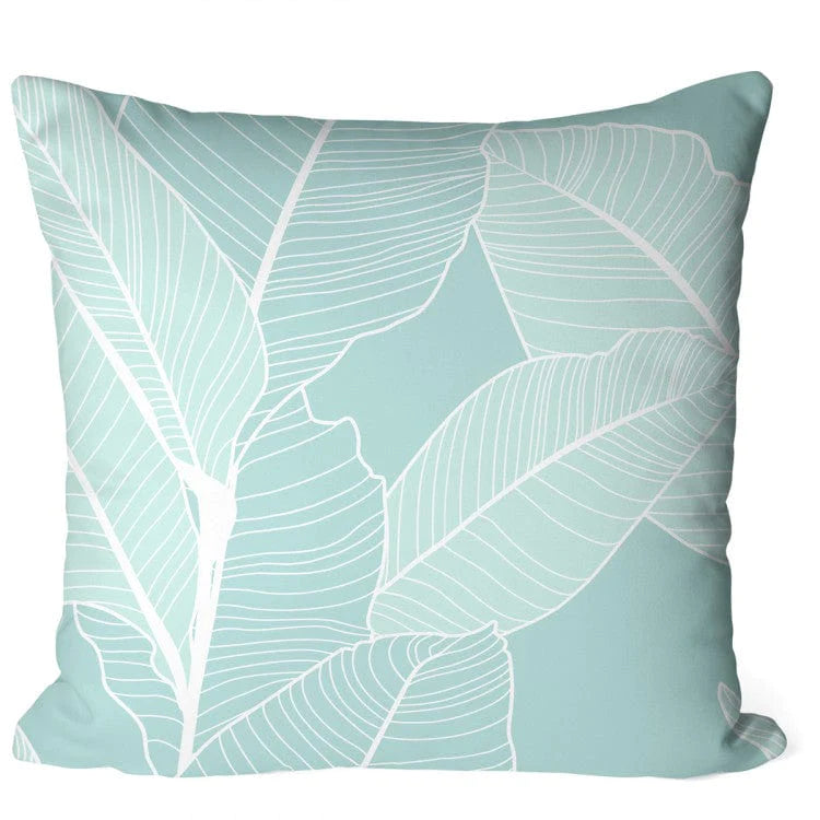 Koristetyynynpäälliset - Kokoonpano ficus valkoiset lehdet turkoosi tausta, 146807