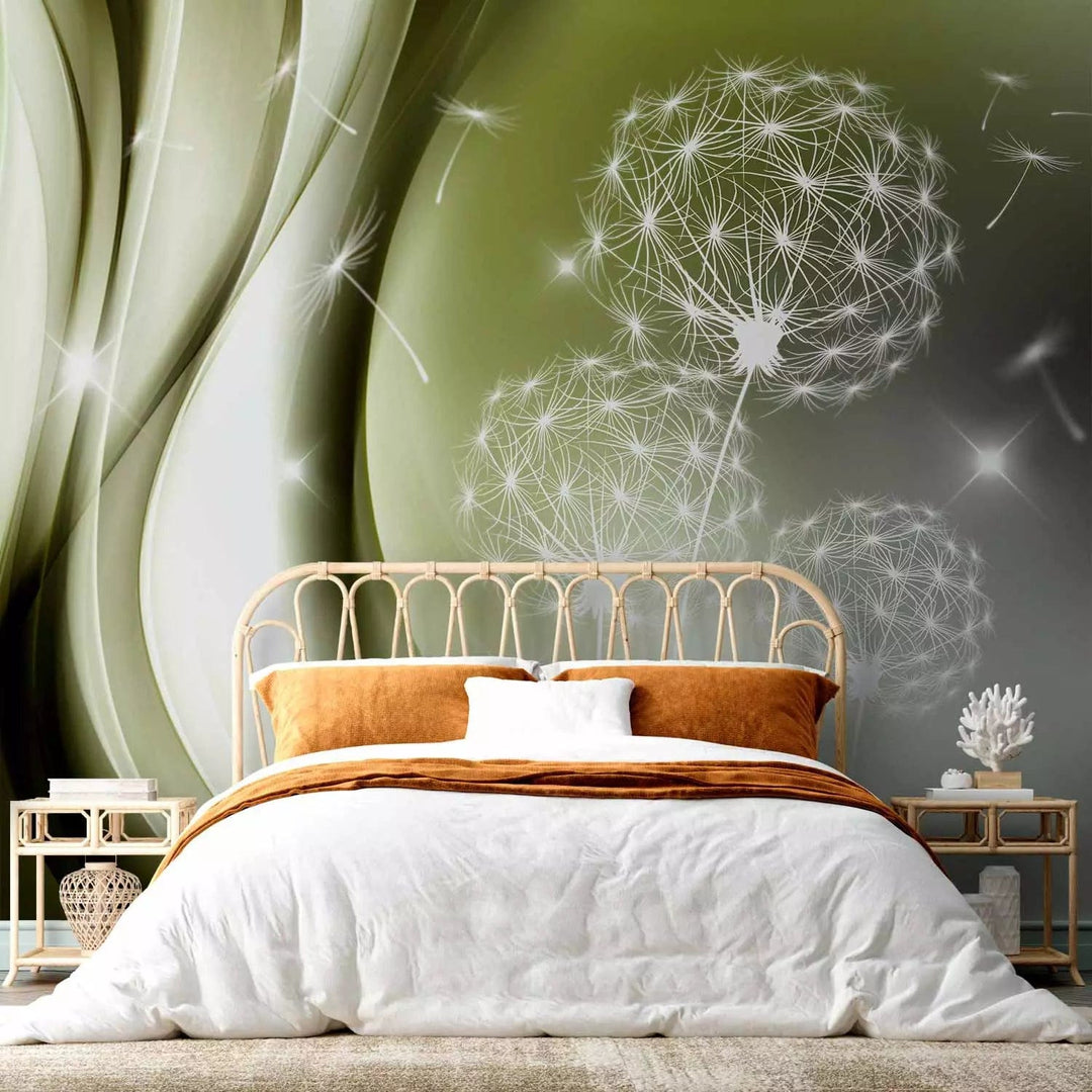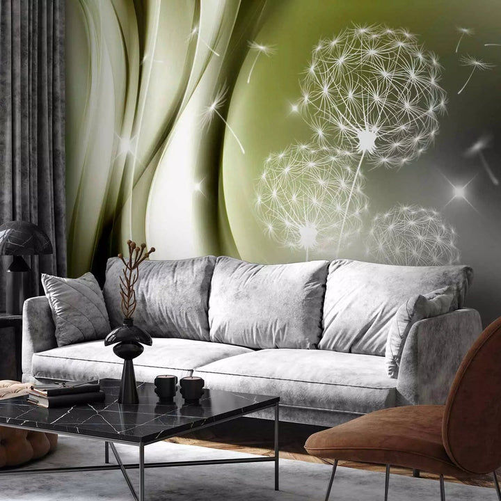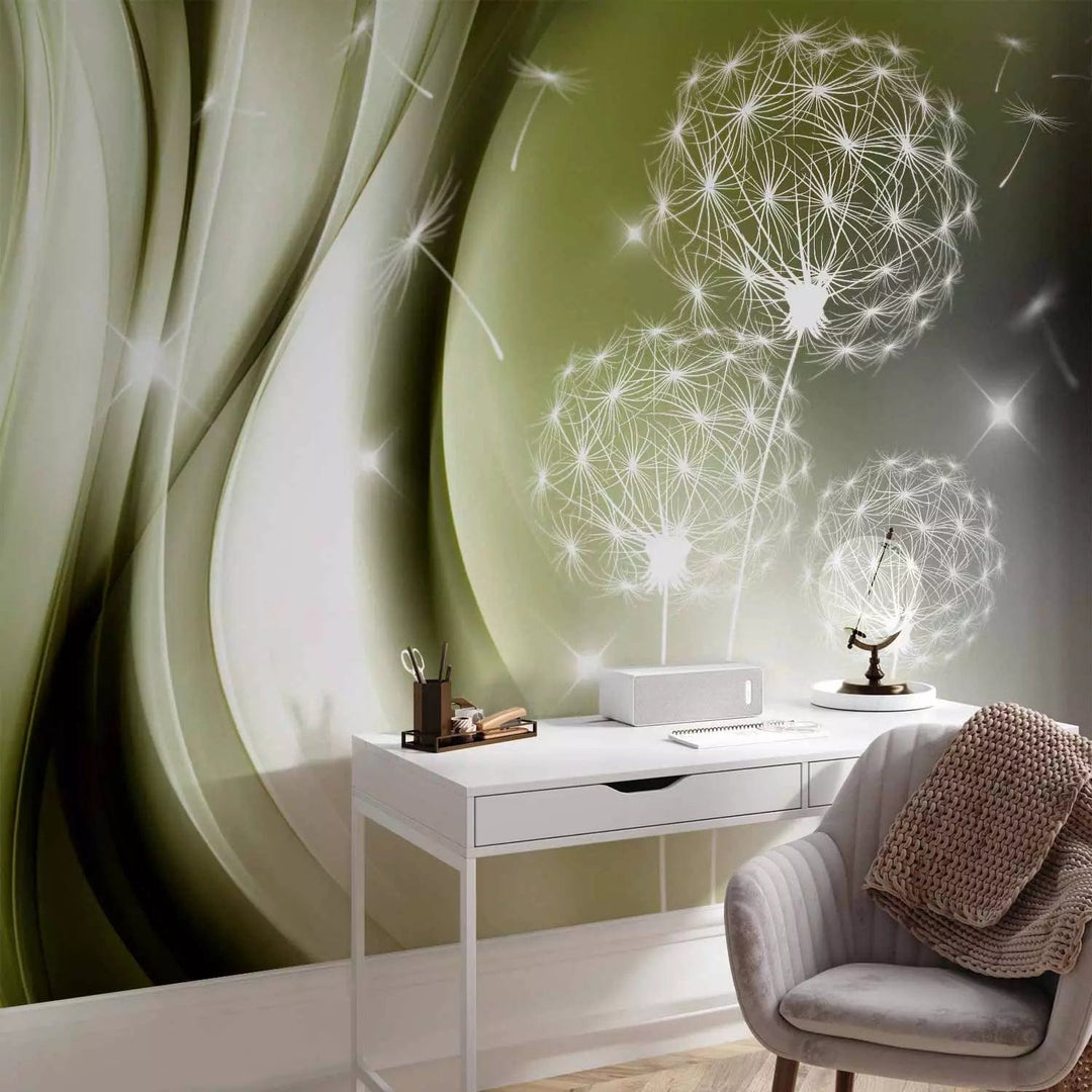 Valokuvatapetti vihreiden sävyjen voikukkien kanssa - Green softness, 91895