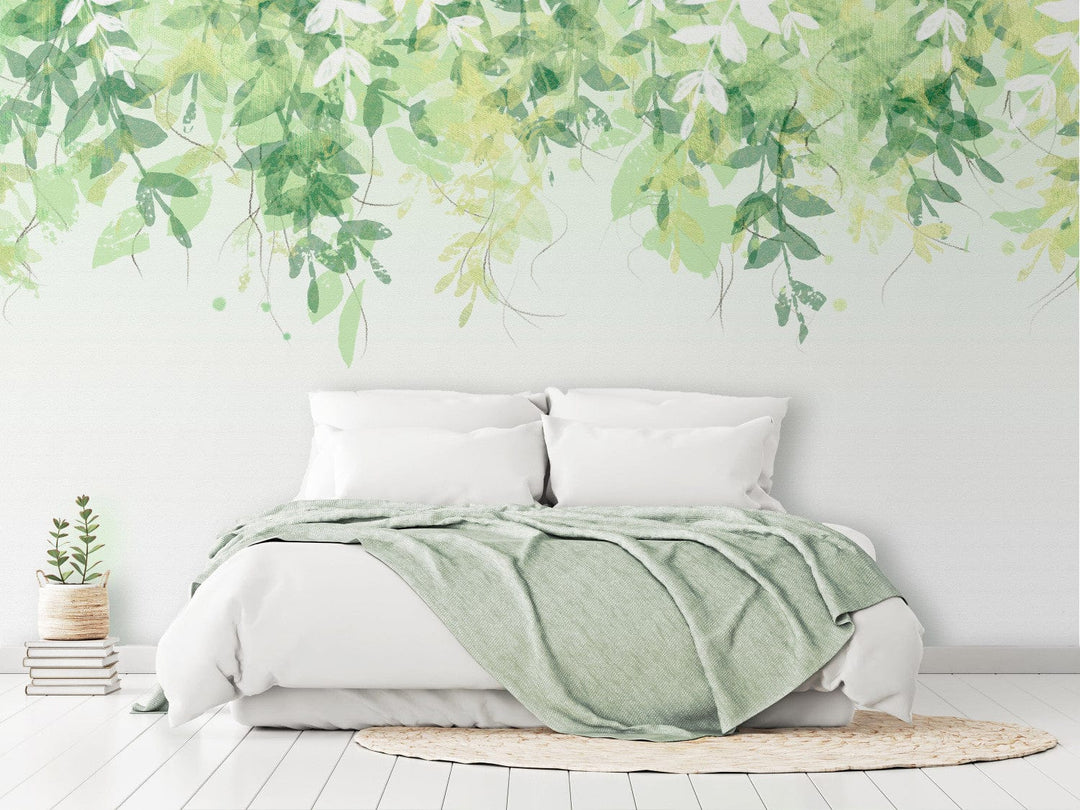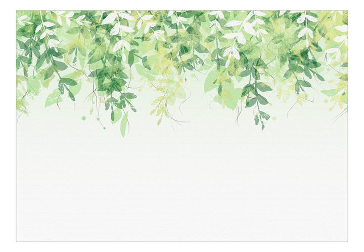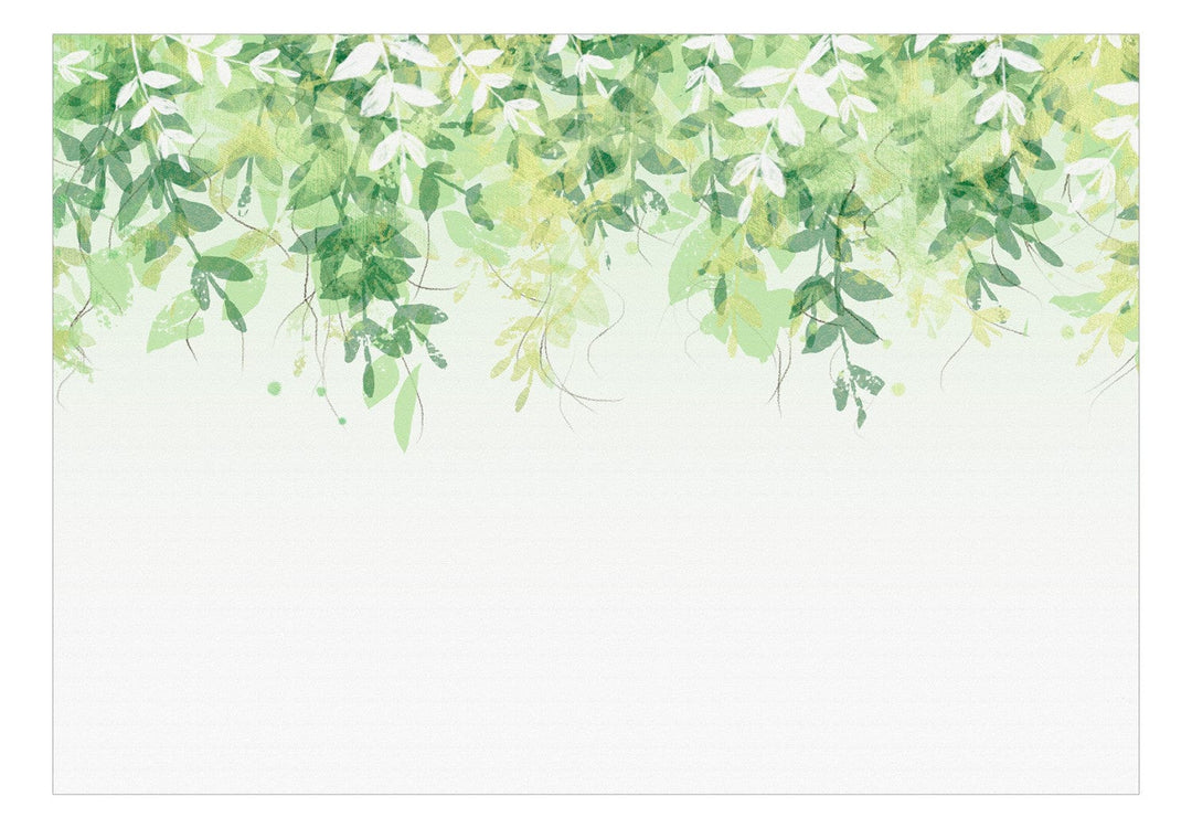 Valokuvatapetti vihreät lehdet valkoisella taustalla, 142586