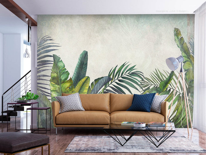 Valokuvatapetti vihreän sävyjä trooppisilla lehdillä - Wild Wall, 142994
