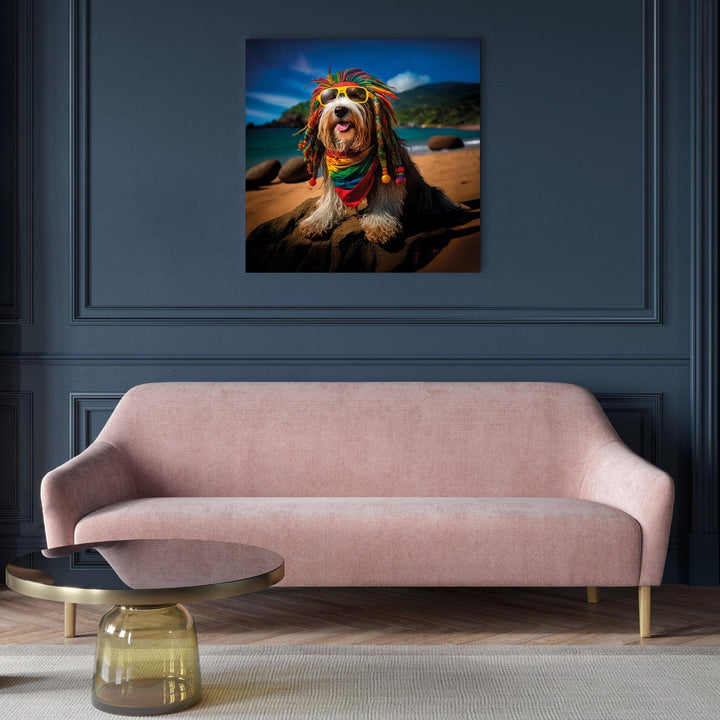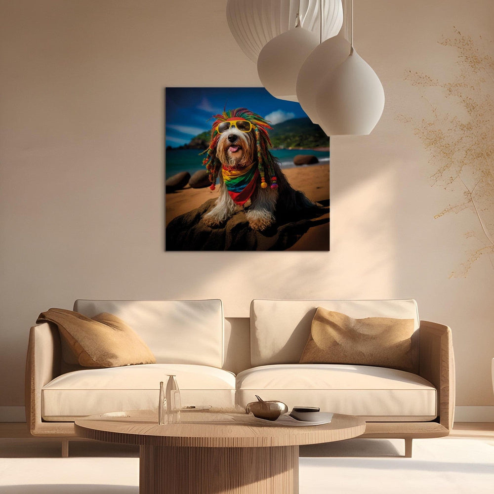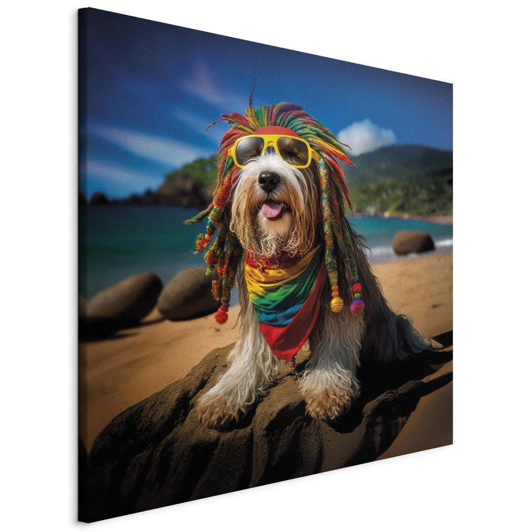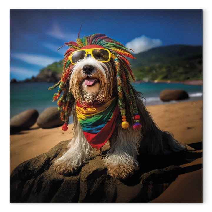 Canvas-taulut - Bearded Collie - Rasta-koira rentoutumassa Paratiisirannalla, 150252