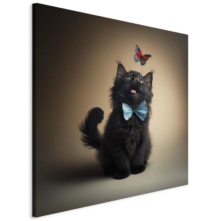 Canvas-taulut - Kissa perhosen kanssa katsomassa lentävää perhosta, 150124